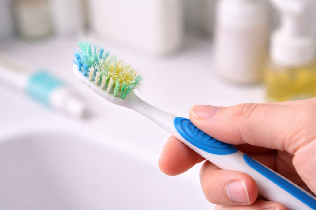 排水口の蓋に絡みついた髪の毛や繊維を、古歯ブラシでかき出します。蓋を外した内側の溝も、泥をかき出すようにして丁寧に掃除してあげましょう。使い終わった歯ブラシが大活躍してくれますよ。