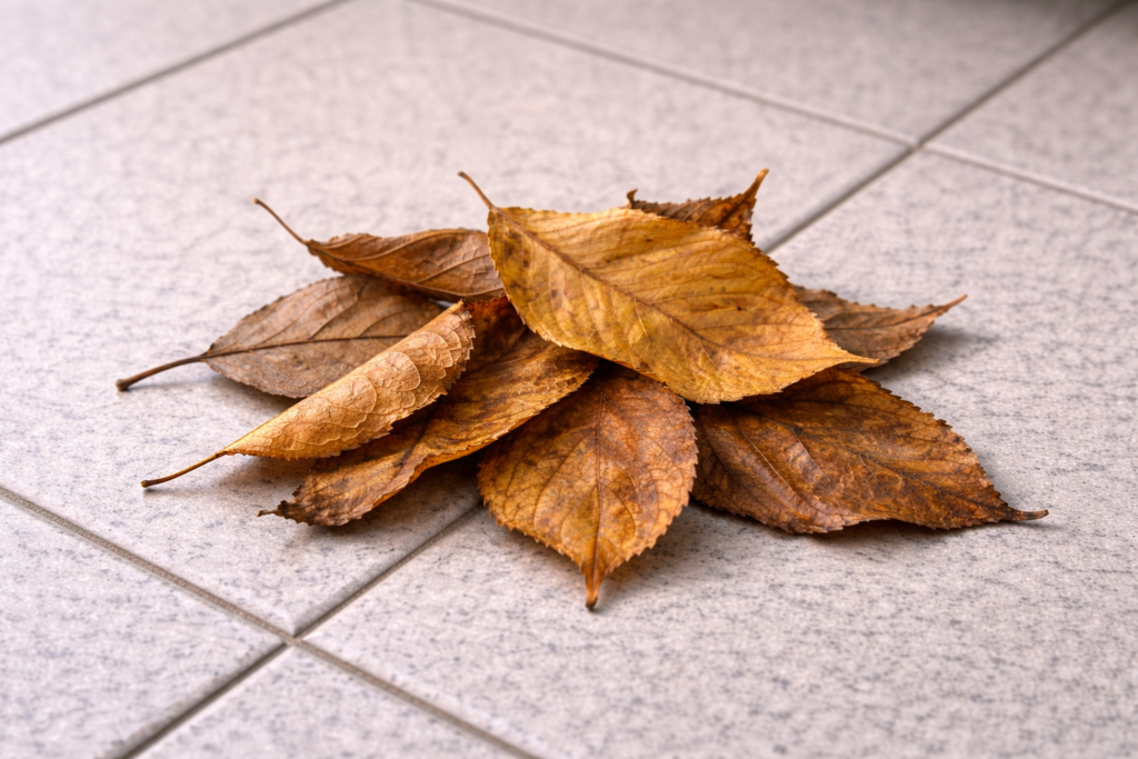 ひとつ目は、枯れ葉と土です。冬の間に飛んできた落ち葉や、鉢植えからこぼれ落ちた土が、気づかないうちに隅に溜まっています。ふたつ目は、砂埃と黄砂。春先に飛んでくる黄砂や砂埃は、水分を含むと泥状になり、排水口の奥で固まってしまいます。そして3つ目が、衣類の繊維や髪の毛です。洗濯物から落ちた糸くずや髪の毛が土と混ざり合い、頑固な詰まりの原因になることがあります。